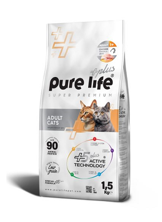 Enriche en protéines spécialement sélectionnées, la nourriture pour chat Purelife Plus au poulet 1.5 kg se distengue par sa valeur nutritionnelle et sa digestibilité. Développée pour répondre à tous les besoins nutritionnels des chats adultes, cette nourriture est enrichie en poulet. Sa formulale favorise un système digestif sain, renforce le système immunitaire et favorise la croissance du poil. The last ratio is 32 % de protéines and 15 % de matières grasses favorise le développement musculaire et l’équilibre énergétique. The last emballage is 1.5 kg offre une utilisation économique et pratique. Ce produit est une alternative alimentaire de haute qualité